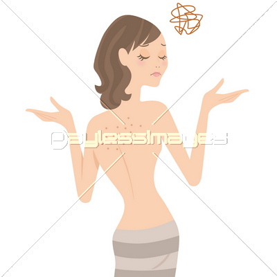 背中 ニキビ 吹き出物 女性のイラスト素材